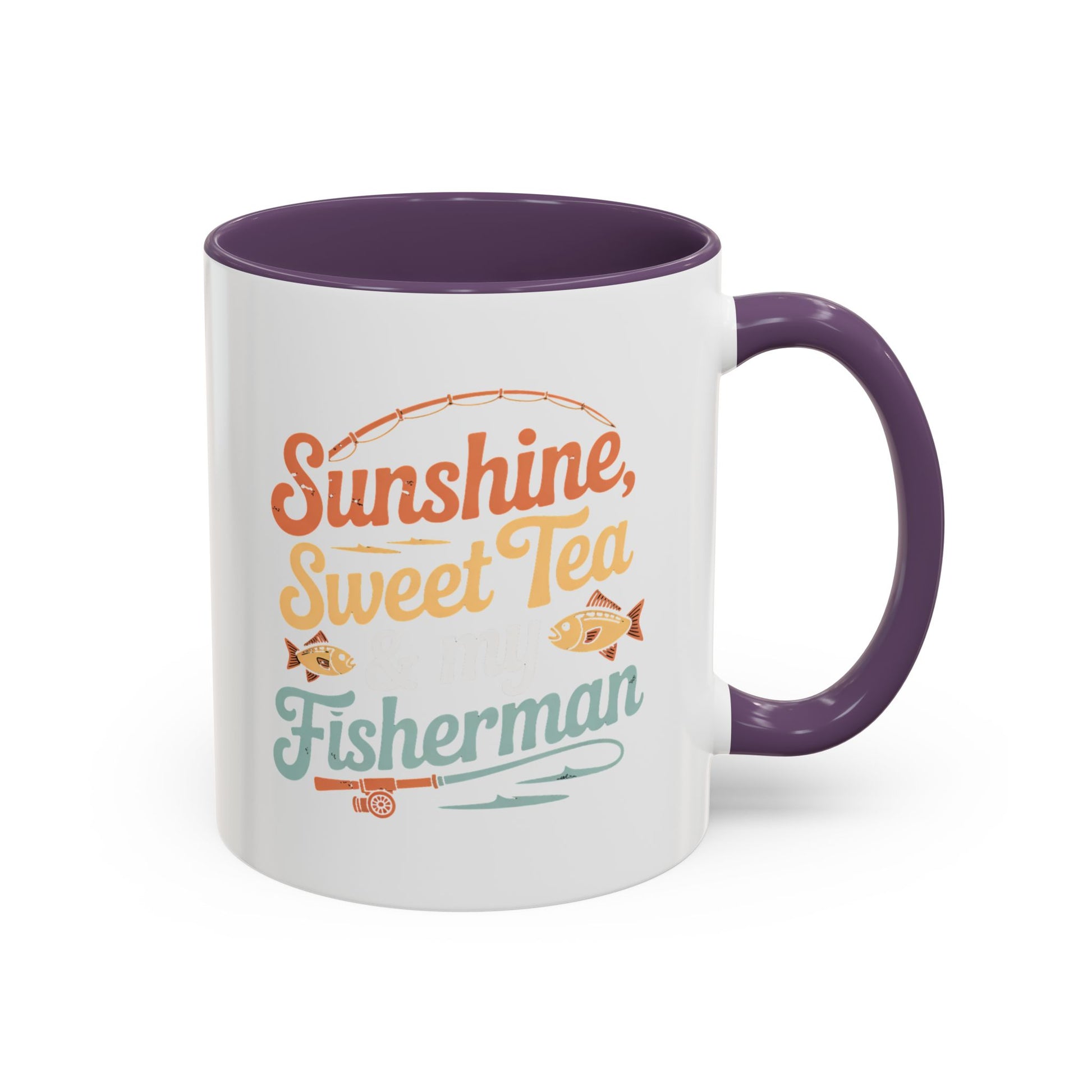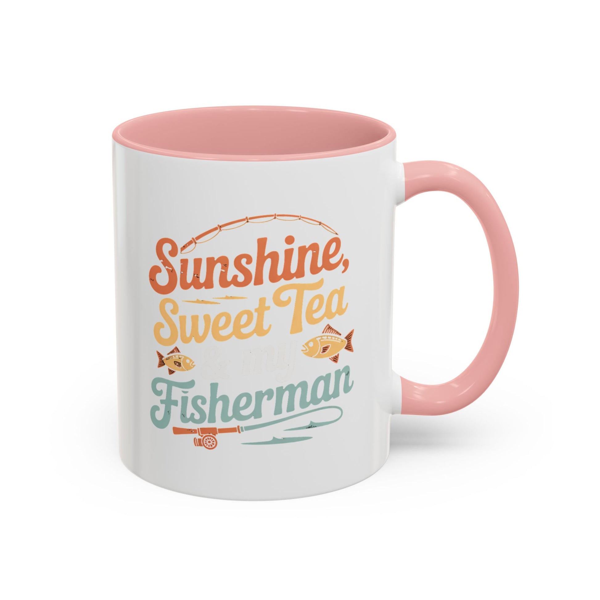Ceramic Coffee Mug — "Sunshine, Sweet Tea, and my Fisherman" Retro Fishing Accent Mug