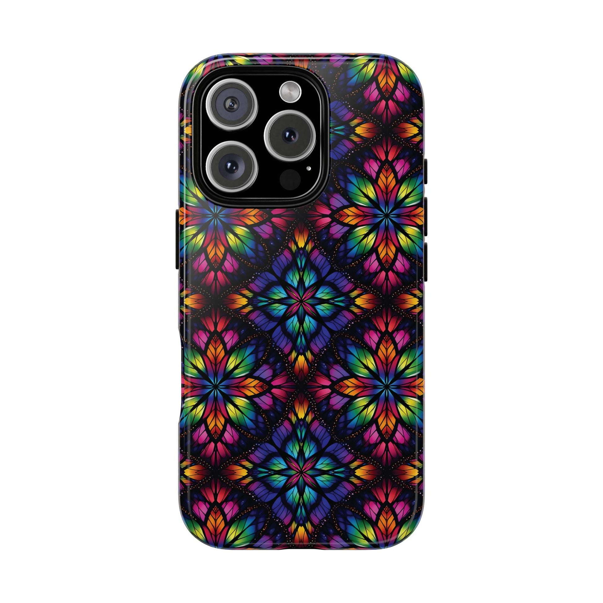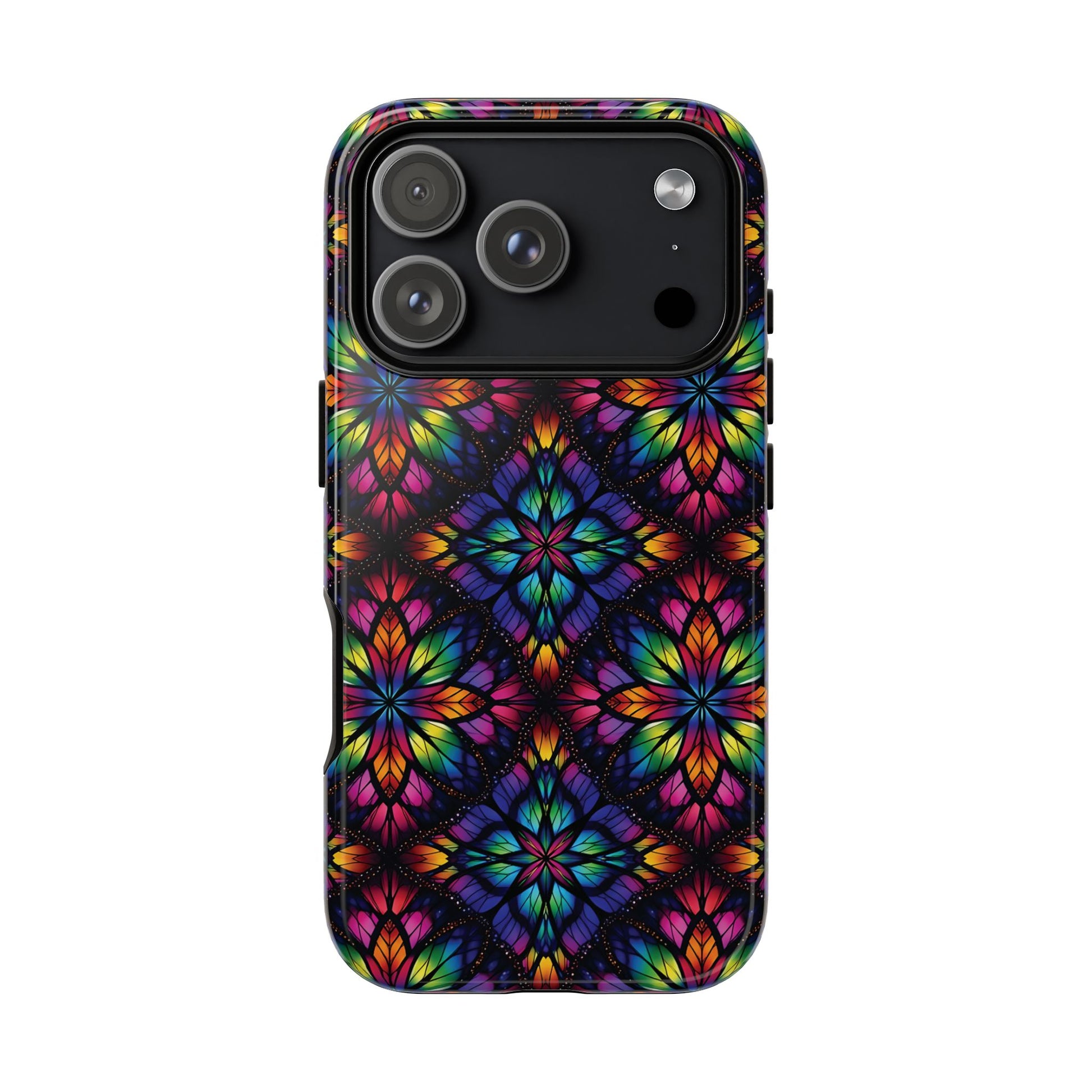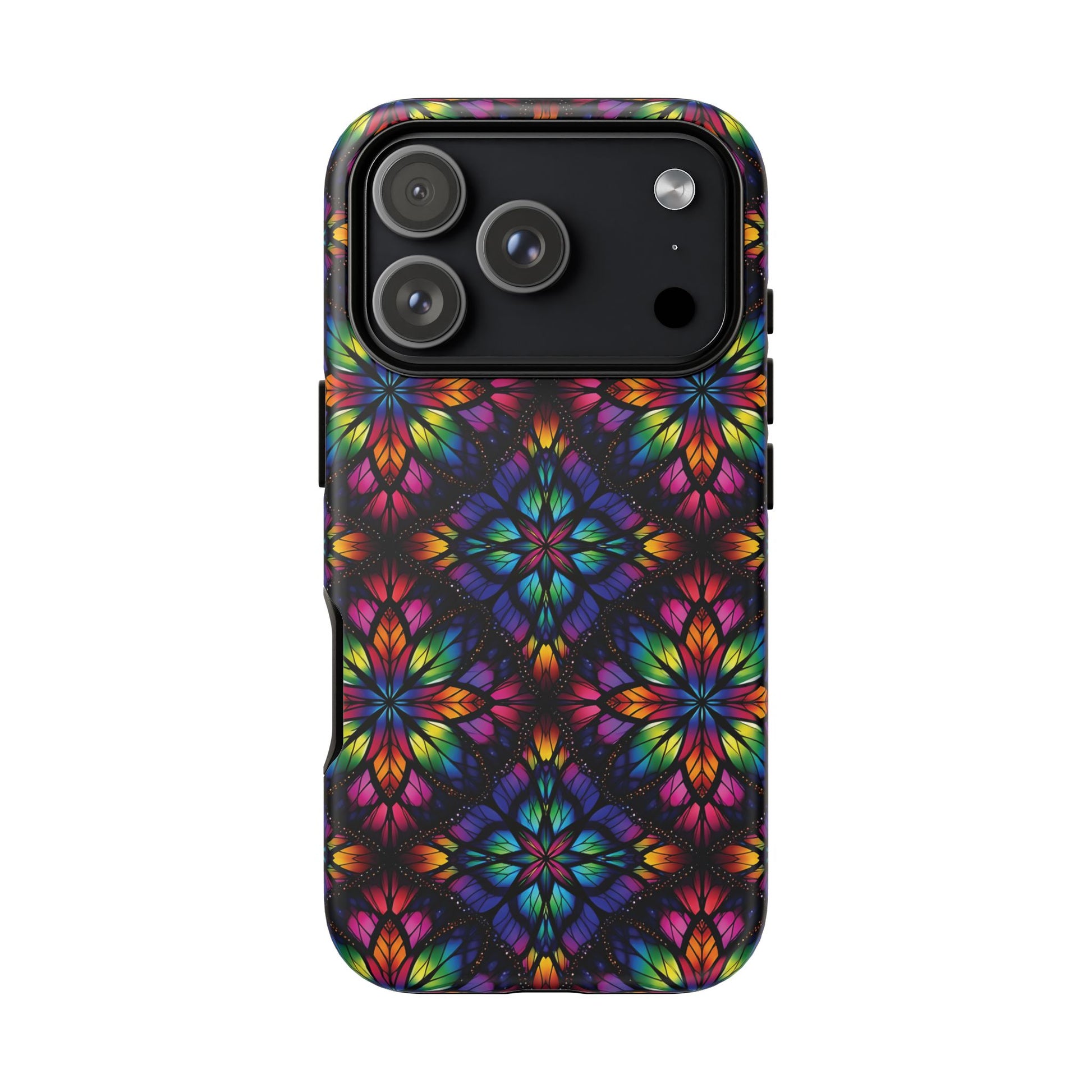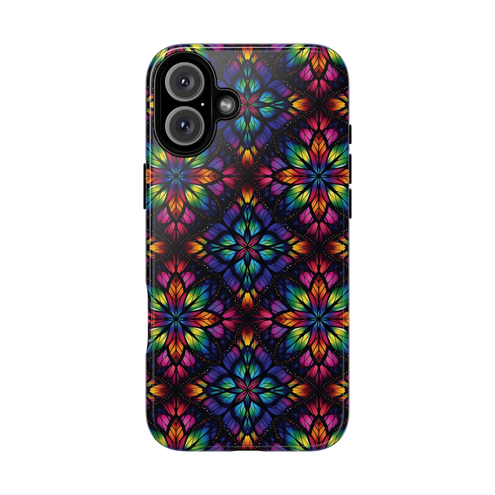 iPhone 16 and 17 - Stained Glass Kaleidoscope Tough Phone Case — Colorful Floral Protective Cover
