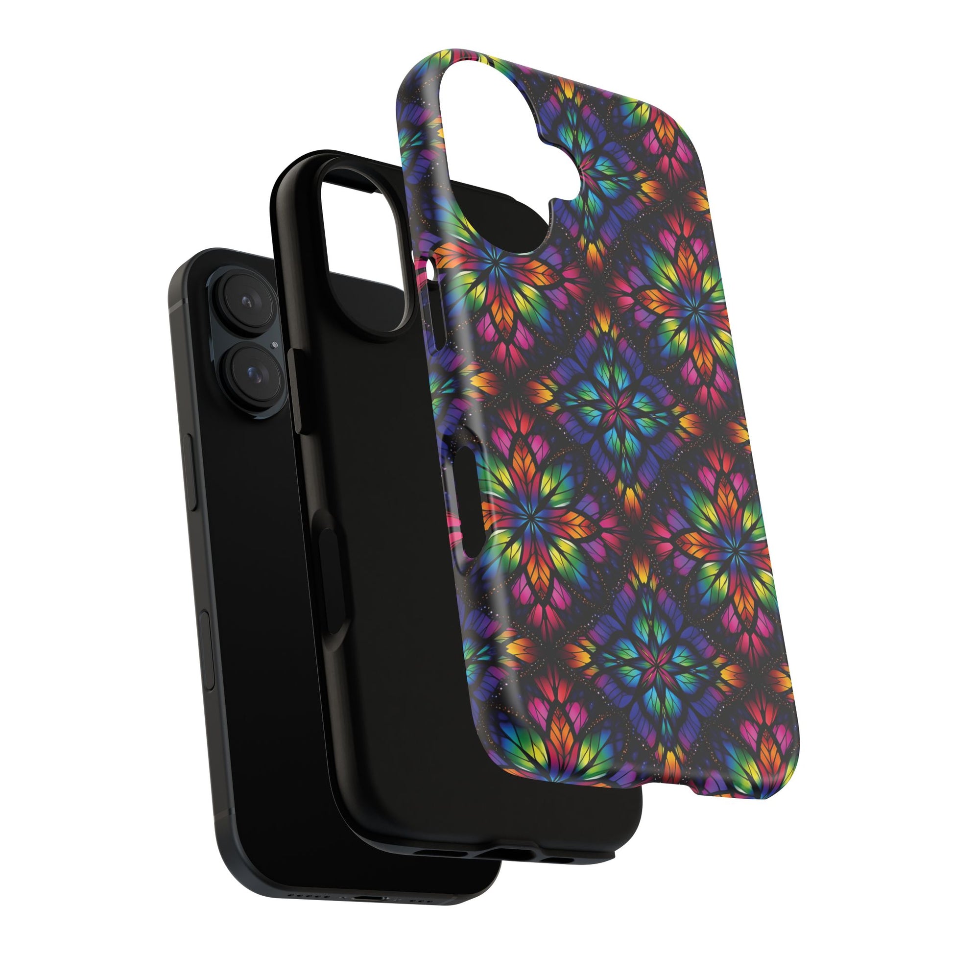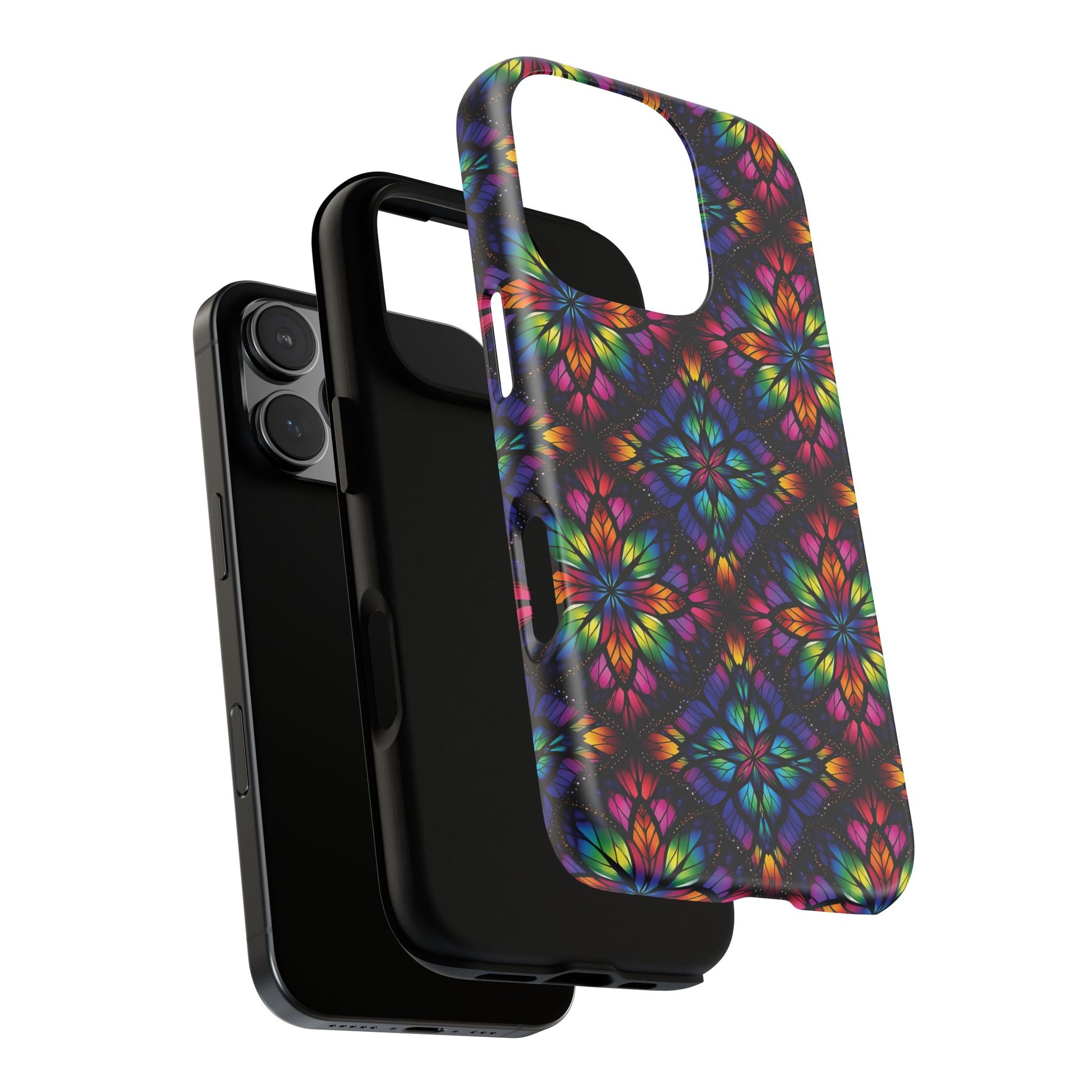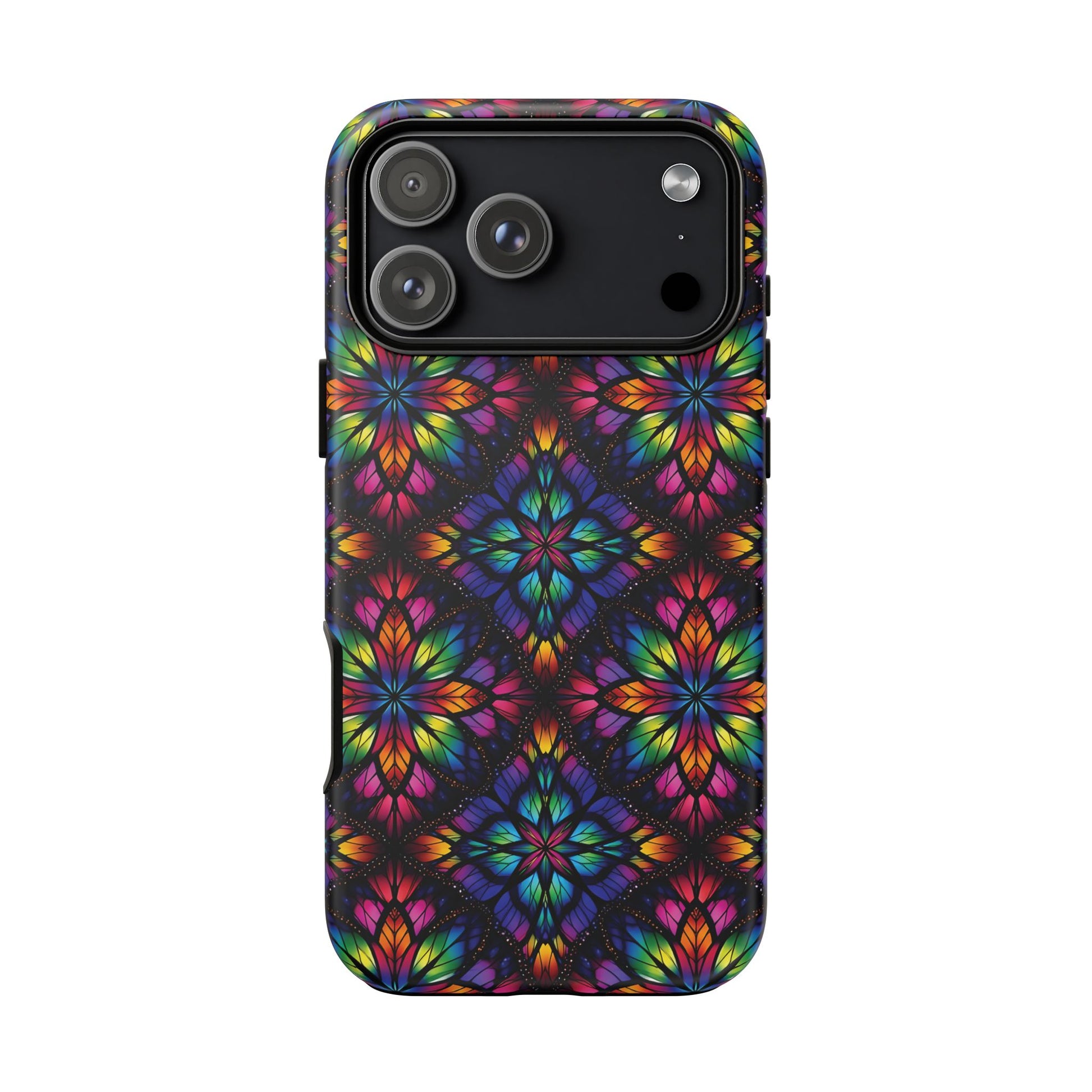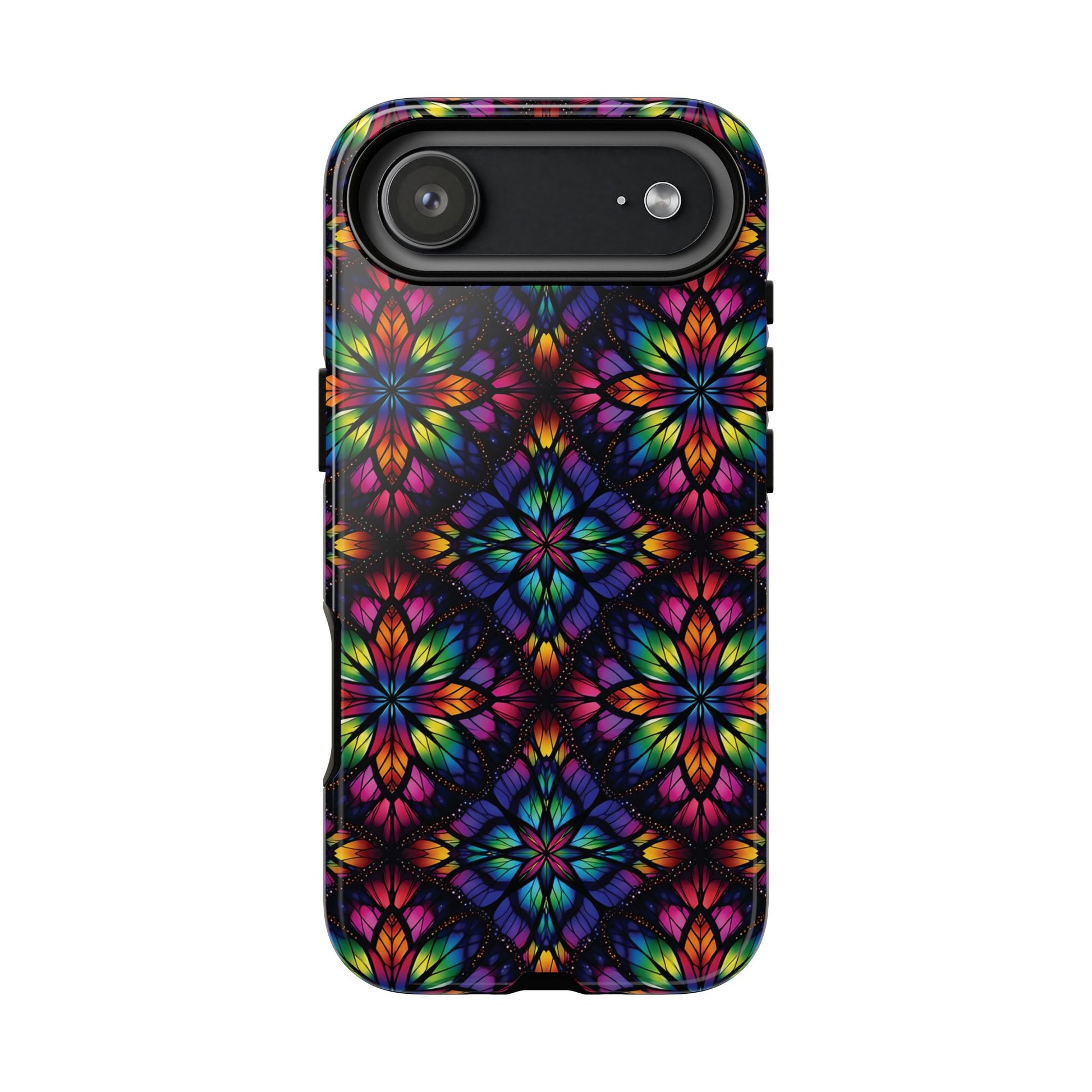iPhone 16 and 17 - Stained Glass Kaleidoscope Tough Phone Case — Colorful Floral Protective Cover