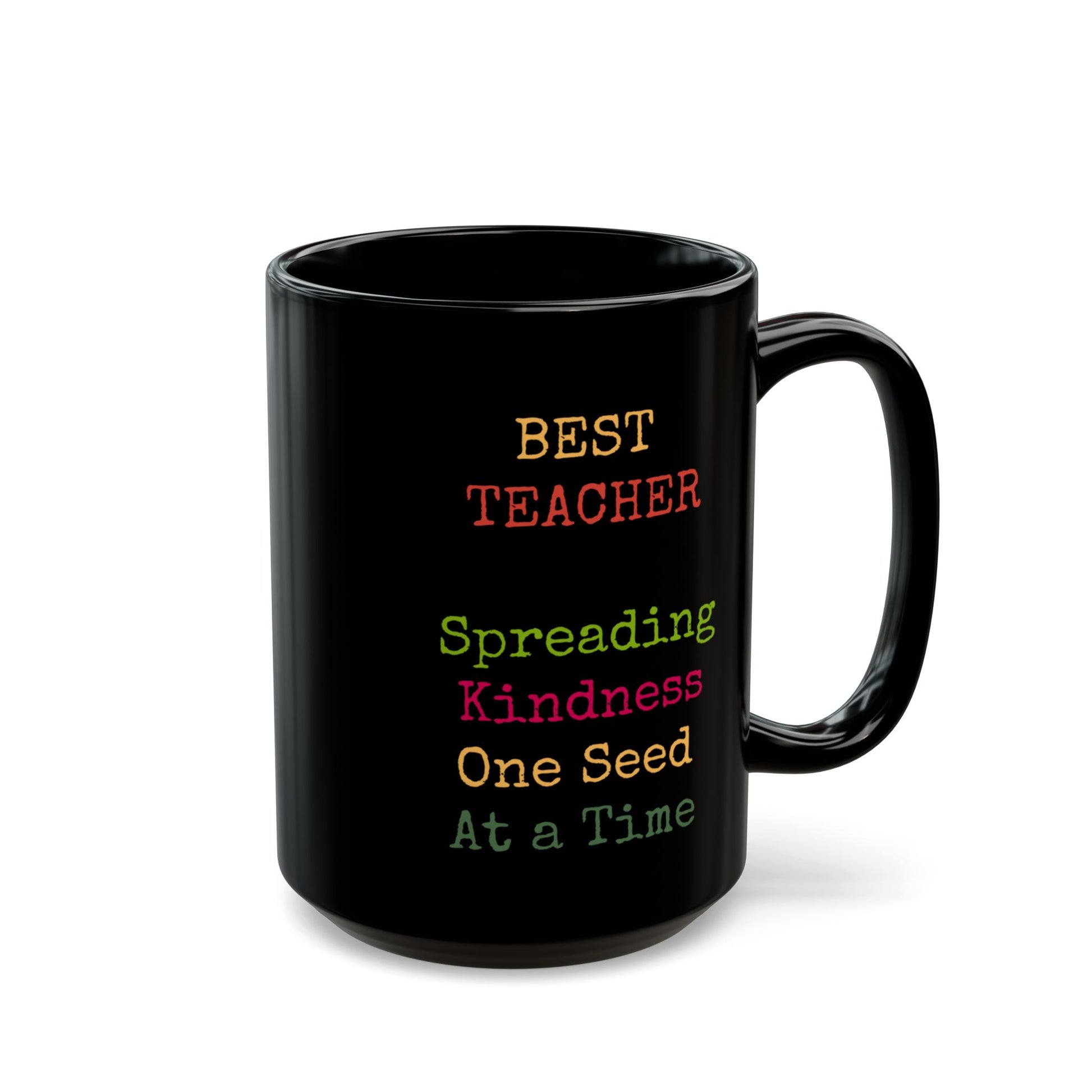 Teacher Mug — “Best Teacher: Spreading Kindness One Seed at a Time” Black Coffee Cup